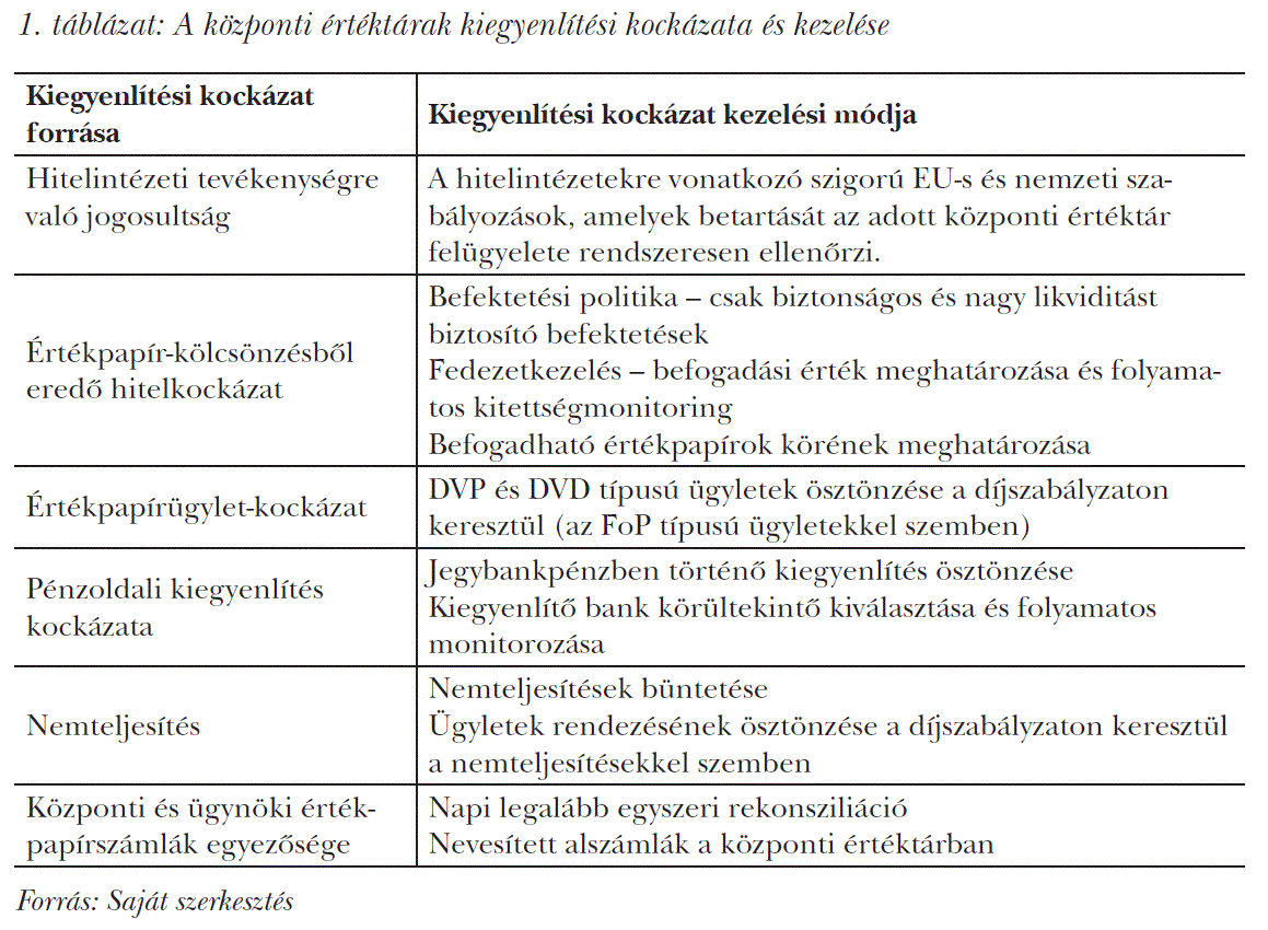 A központi értéktárak kiegyenlítési folyamata kapcsán jelentkező kockázatok és kezelésük